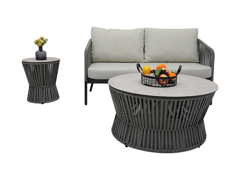 স্পেসিফিকেশন | ফ্ল্যাট দড়ি বুনানো সহ অ্যালুমিনিয়াম ফ্রেম, ভিতরে স্পঞ্জের সাথে 10 সেমি সিট কুশন, ভিতরে ফাইবার ভরাট সহ পিছনে কুশন, 230 গ্রাম/এম 2 পলিয়েস্টার কুশন ফ্যাব্রিক; একক চেয়ার: l82*ডাব্লু 75*এইচ 69 সেমি, 2 পিসি; লাভসেট চেয়ার: l82*ডাব্লু 142*এইচ 69 সেমি, 1 পিসি; কফি টেবিল: ∮85*এইচ 43 সেমি, সিরামিকের উপর ভিত্তি করে 6 মিমি গ্লাস; সাইড টেবিল: সিরামিকের উপর ভিত্তি করে ∮42*এইচ 48 সেমি, 6 মিমি গ্লাস |